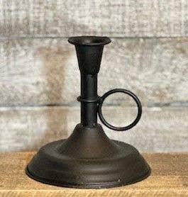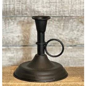 Porte-bougie conique unique avec un moule à bougie en métal noir cannelé et une base en anneau métallique à sangle. Les bords légèrement rouillés et vieillis ajoutent une touche primitive. 5 po de diamètre, 1 1/2 po de hauteur. Peut contenir un cône standard ou LED. (Bougie et remplisseuses non incluses)