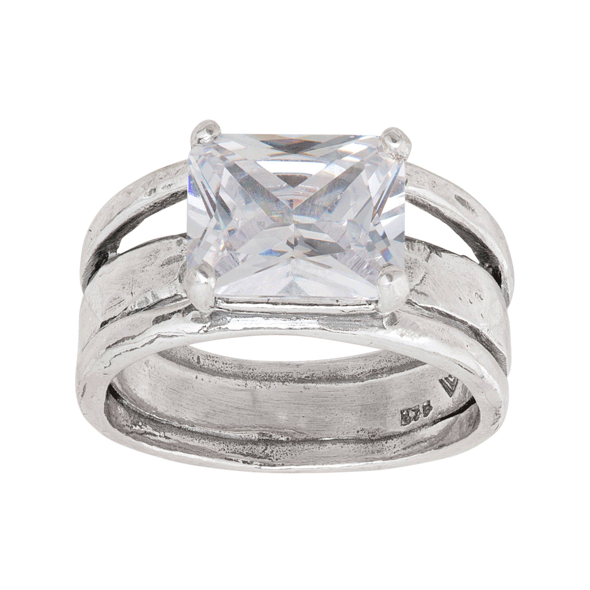 Conçu par l'artisan Efrat Saada-Limor en Israël. Cette bague texturée est parfaite pour ajouter des détails dimensionnels à n'importe quelle tenue. Des zircone cubiques brillants sont sertis sur des rangées d'argent sterling gravées et tressées, faisant de cette pièce un ajout diversifié à votre collection. La pièce est ornée d'un poinçon en argent sterling 925, symbole de la qualité garantie du produit.