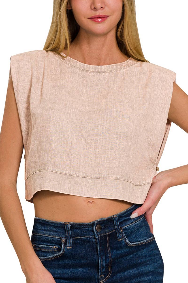 ***L'utilisation d'images est autorisée aux acheteurs qui achètent chez nous via Faire uniquement. SI-26134 Débardeur court à boutons latéraux délavé à l'acide - COL ROND - ÉPAULE STRUCTURÉE - CONFORTABLE ET STYLÉ - FERMETURE À BOUTONS LATÉRALE ET ARRIÈRE Matériau : 75% RAYON 25% LIN Lin BrandBestseller