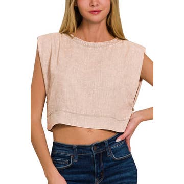 Crop top muscle à boutons latéraux délavé à l'acide en vente B2B