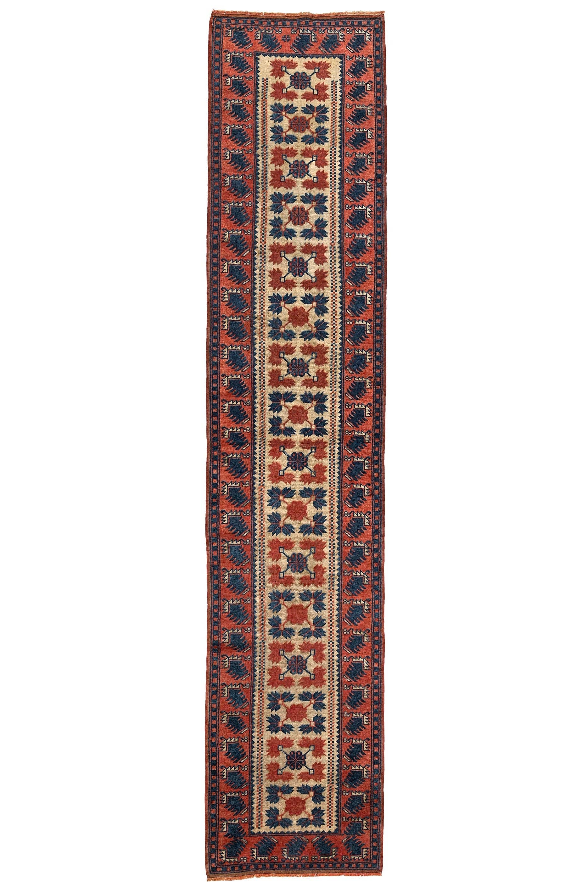 Ce tapis vintage fait main raconte une histoire à travers ses motifs géométriques complexes, chacun symbolisant une signification culturelle et une expression artistique. Confectionné en laine de haute qualité, son design classique présente une couleur bordeaux riche qui ajoute chaleur et élégance à tout espace. Les franges sont également faites à la main, soulignant l'artisanat impliqué dans sa création. Ce tapis est en excellent état, ayant été nettoyé et restauré professionnellement. Bien qu'il soit vintage, il est prêt pour sa première utilisation par un nouveau propriétaire, offrant à la fois histoire et nouveaux commencements à votre décoration. **Mesures :** - Dimensions : 117x212 cm - Hauteur : 0,5 cm - Poids : 6 kg Ce chef-d'œuvre rectangulaire allie forme et fonction, convenant aussi bien aux intérieurs traditionnels que contemporains. Ses tons bordeaux sont flexibles, complétant diverses palettes de couleurs et styles, ce qui en fait un ajout idéal à votre maison ou bureau.