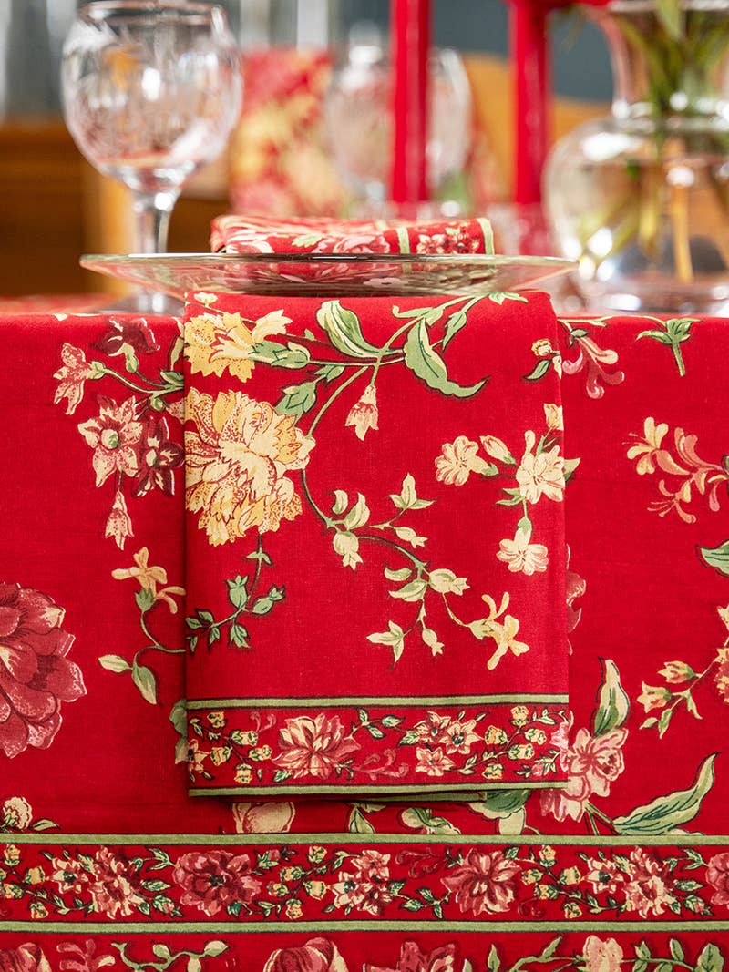 Fabriquée en France, il s'agit d'une serviette en jacquard 100 % coton tissé. Mesurant 18 x 18 pouces. Laver à la machine à froid, sécher à l'air libre ou sécher à une température délicate.