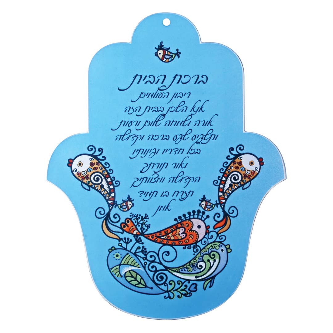 Mezouza 15,2 cm en émail bleu peint à la main
