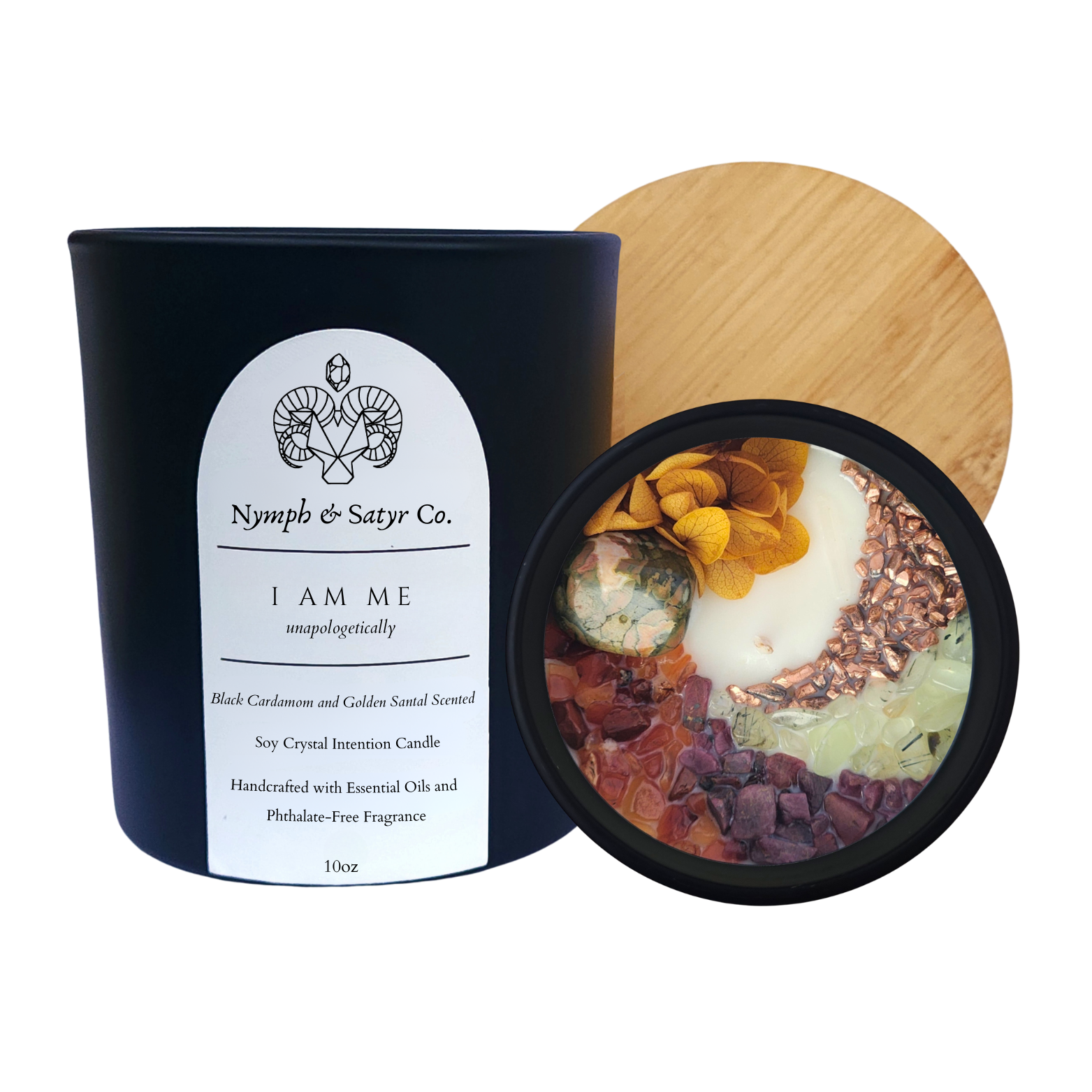 Yunü (La jeune fille de jade) Parfumé au bambou et à la menthe Bougie d'intention au soja et aux cristaux de 10 oz Gobelet en verre noir mat coulé à la main avec couvercle en bambou Notre bougie en cristal Yunü (La jeune fille de jade) est inspirée de celle qui, avec son homologue masculin, guide les âmes vertueuses vers le paradis. La lumière vous guidera tout au long de votre propre voie dorée. Cristaux : quartz rose, jade, tourmaline mixte, agate Crazy Lace Fabriqué à la main avec : Cire de soja 100 % américaine Huiles essentielles Parfum sans phtalates *Toutes les bougies sont livrées avec une mini-baguette en sélénite (intégrée à la bougie) pour garder toutes les pierres de la bougie propres et chargées. * **Veuillez prévoir de légères variations, car les cristaux et les fleurs/herbes sont naturels et il n'y en a pas deux identiques ! ** Attention : veuillez déplacer ou retirer les grandes fleurs ou le feuillage à proximité de la mèche avant d'allumer votre bougie.