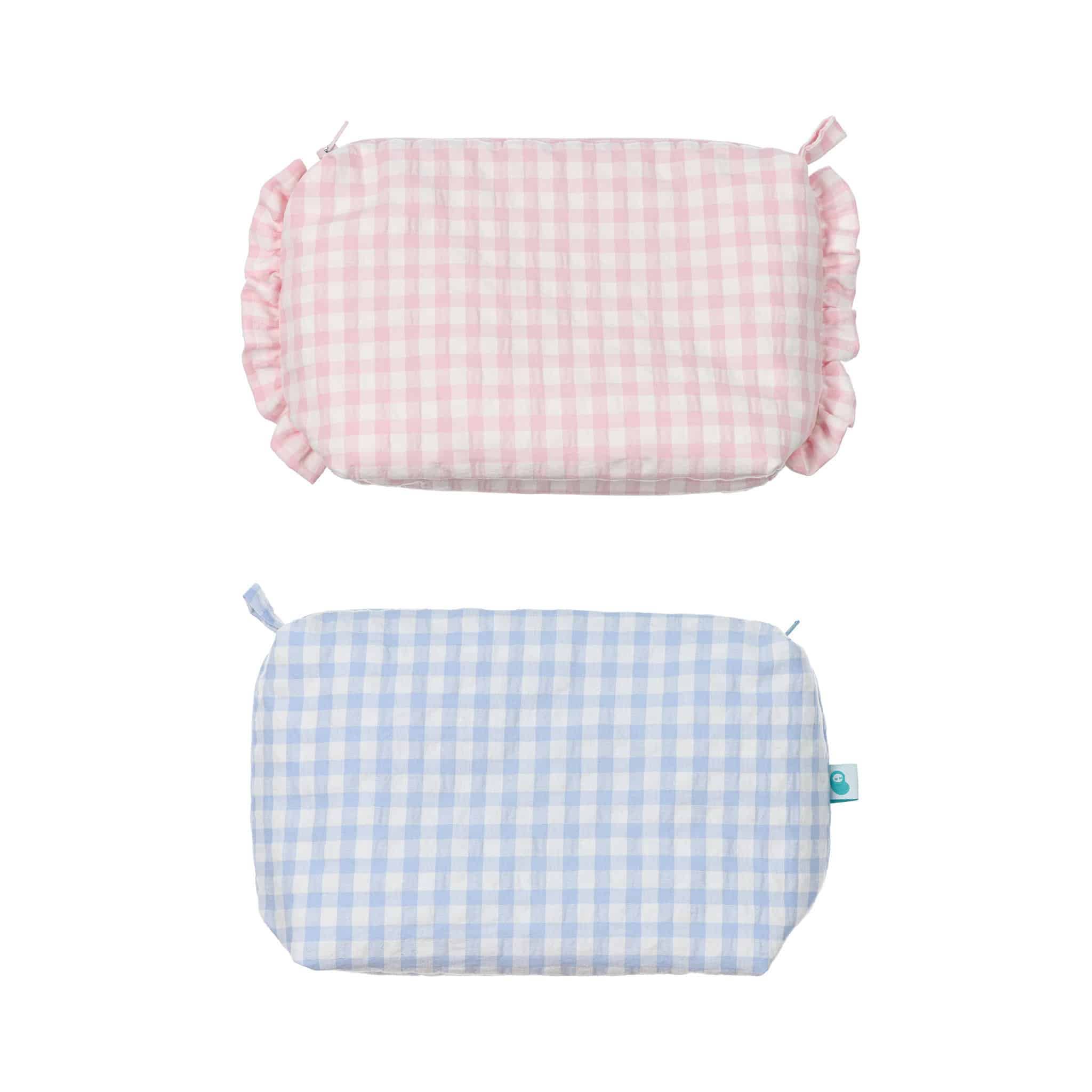 Serviette de bain pour bébé en coton turc (grammage : 380) avec capuche doublée de tissu vichy à l'extérieur. Elle a une boucle à l'extrémité pour l'accrocher à un cintre et est disponible en trois couleurs : bleu, gris et rose. La serviette a des dimensions de 100 x 100 cm.