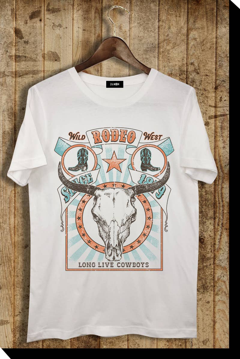 T-shirt graphique western cowboy rodeo avec tête de taureau en vente B2B