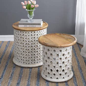 La table d'appoint Pala est une petite table ronde en forme de tambour avec une base ouverte en boucle faite de rotin et un dessus en canne tressée. Le matériau, qui n'est pas destiné à un usage extérieur, est un matériau durable et durable qui durera des générations s'il est correctement entretenu.
