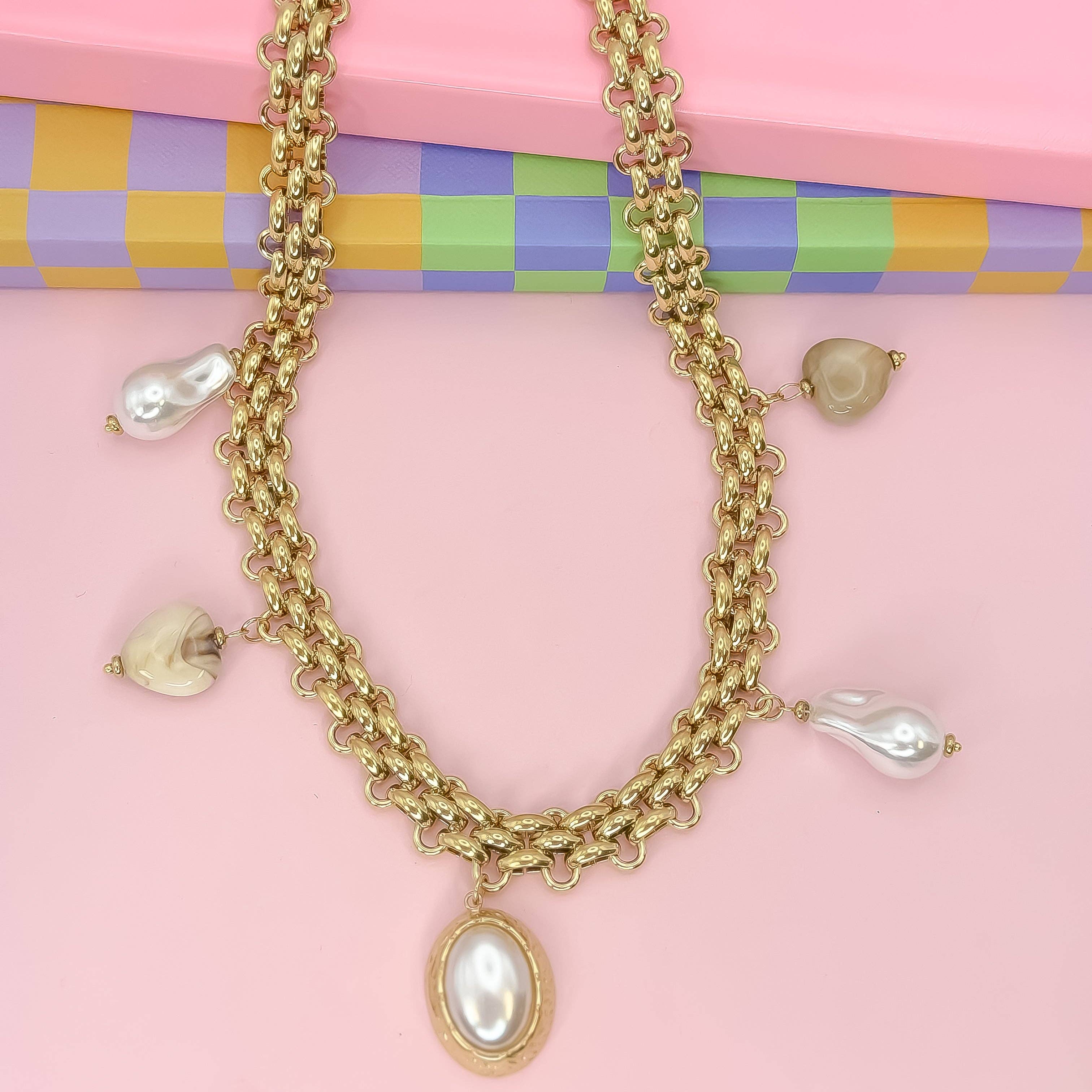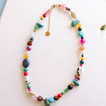 * Augmentez le plaisir avec ce collier ! Une explosion joyeuse de couleurs vives, de perles en forme de donuts et de textures en zigzag ludiques, le tout ancré dans des détails dorés brillants. Portez-le lorsque vous vous sentez audacieux, éclatant et totalement inarrêtable. * Nous offrons une garantie pour les produits endommagés. * Longueur 16 pouces + rallonge de 2 pouces.