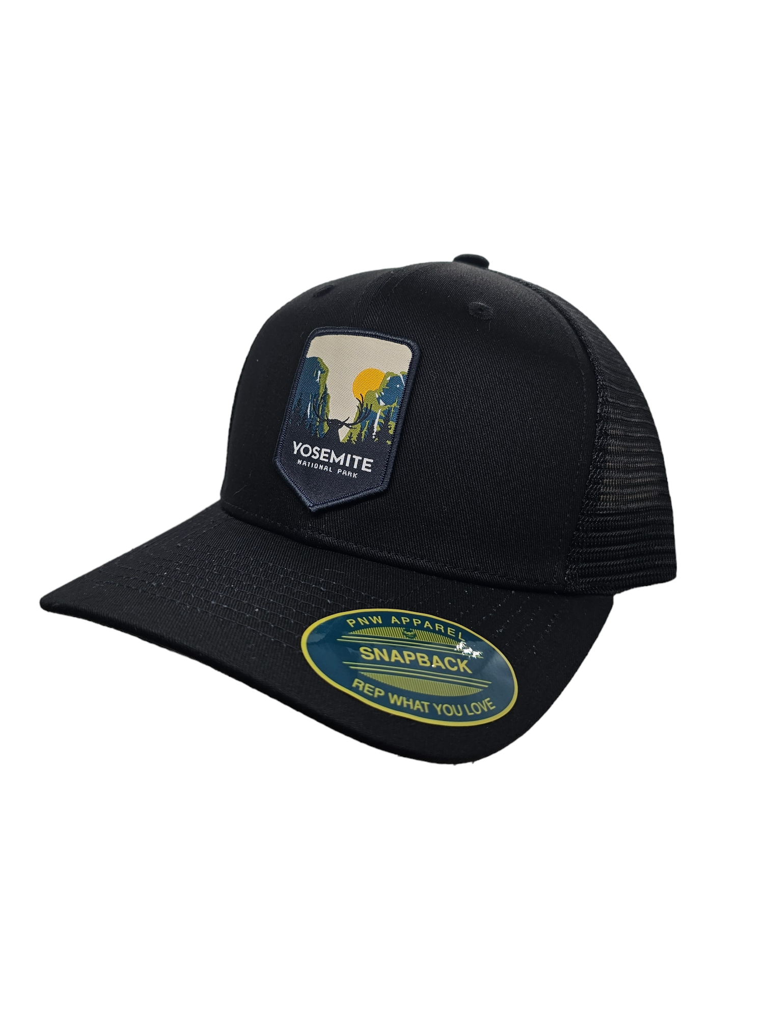 Casquette Yupoong à bouton-pression avec écusson « Parc national de Yosemite ». Taille unique. Ajustable pour les tailles de chapeaux 6-5/8 à 7-5/8 Les panneaux avant sont en coton et le dos en maille est en polyester. Disponible en : Vert mousse et dos en maille kaki Brun et dos en maille kaki Orange et dos en maille kaki