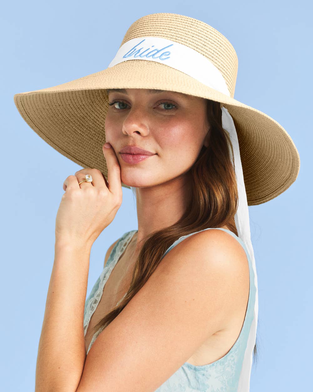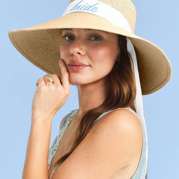 Chapeau de soleil pliable à visière roulante pour mariée • Taille : Taille unique • Matériau : 100 % papier Ce chic chapeau de soleil à visière roulante présente un large bord pour une protection solaire optimale et une broderie "mariée" élégante en lettres audacieuses. Léger, pliable et prêt pour le voyage—parfait pour les enterrements de vie de jeune fille, les journées à la plage et les festivités de mariage.