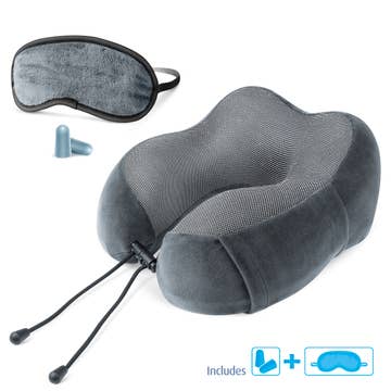 Ensemble coussin de voyage pour le cou en mousse à mémoire et masque pour les yeux Leluxe Home - 2 pièces en velours