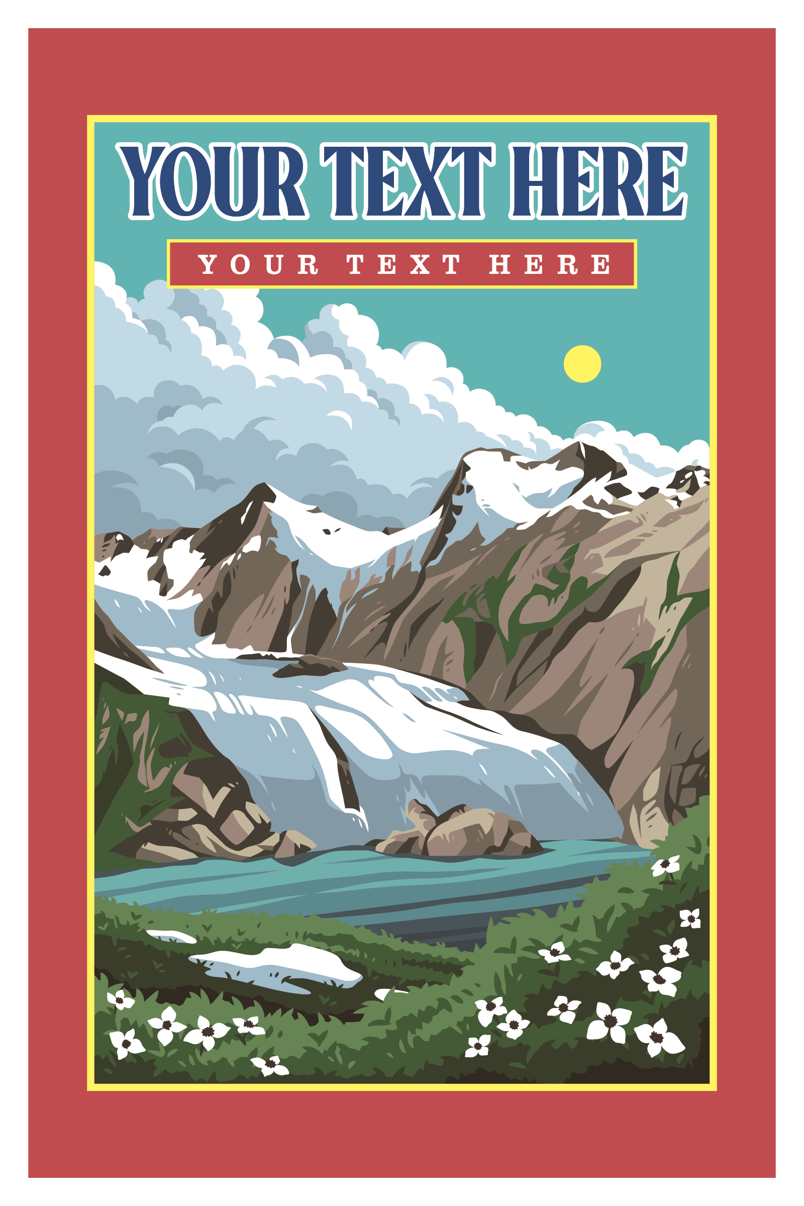Taille 4-1/2 x 6 pouces Impression offset et aluminium sur du papier cartonné non couché Description de l'image : une carte postale rectangulaire imprimée numériquement représentant une scène montagneuse du parc national des Glaciers, avec le texte doré « SALUTATIONS DU PARC NATIONAL DES GLACIERS » sur le devant de la scène Toutes les images, produits et designs © Noteworthy Paper & Press