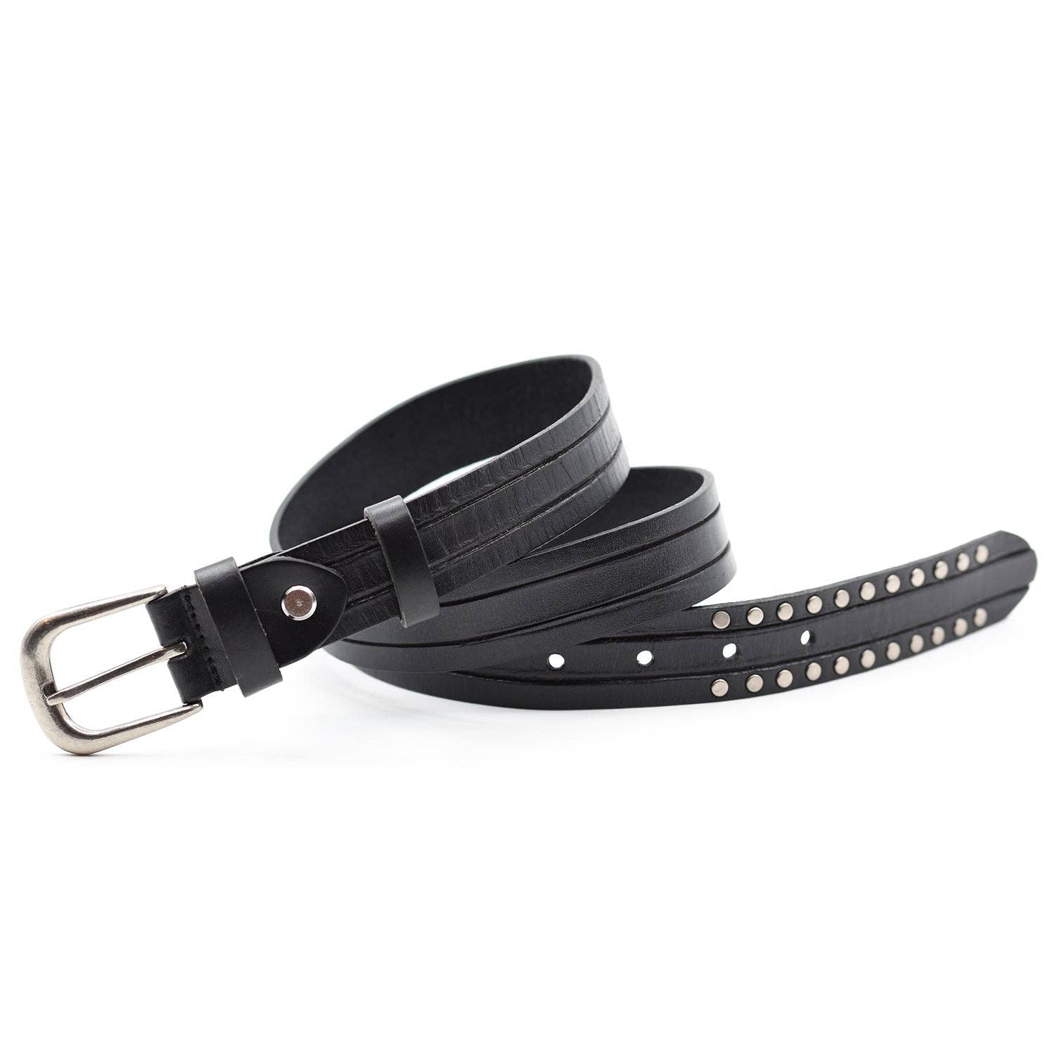 Ceinture en cuir de luxe à enrouler avec éléments cousus et boucle à passant. en vente B2B