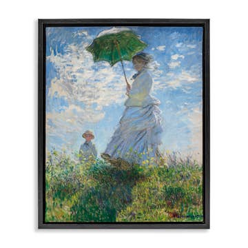 "La Femme à l'ombrelle - Madame Monet et son fils" est l'une des œuvres les plus célèbres et les plus appréciées de Monet. Ce portrait, non seulement une représentation personnelle de sa femme et de son fils, mais aussi une pièce impressionnante de l'impressionnisme, capture les effets fugaces de la lumière sur le tissu et la nature. La pose dynamique de Madame Monet, saisie comme en plein mouvement avec des cieux tourbillonnants derrière elle, met en valeur l'utilisation innovante de la perspective et de la lumière par Monet.