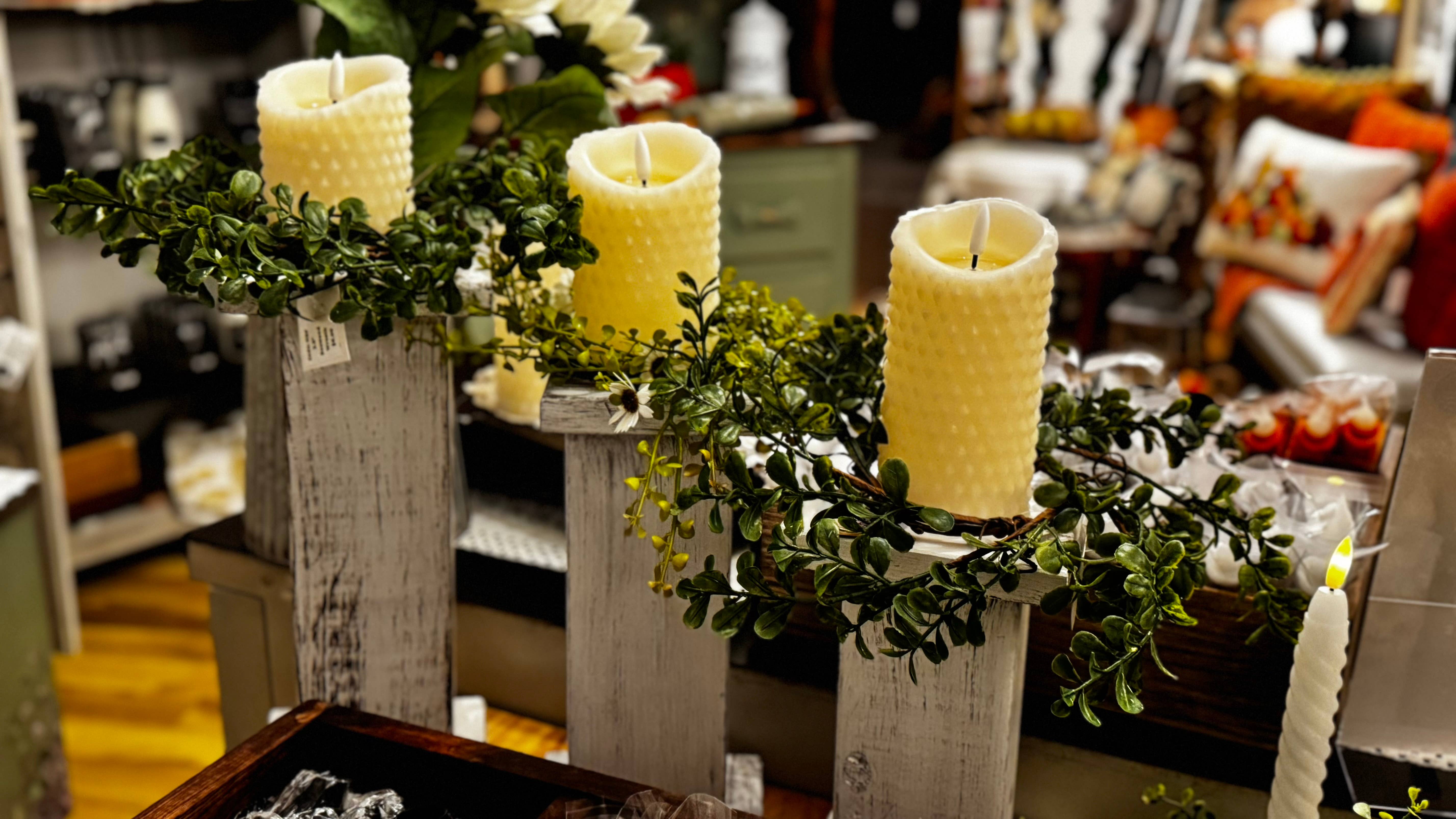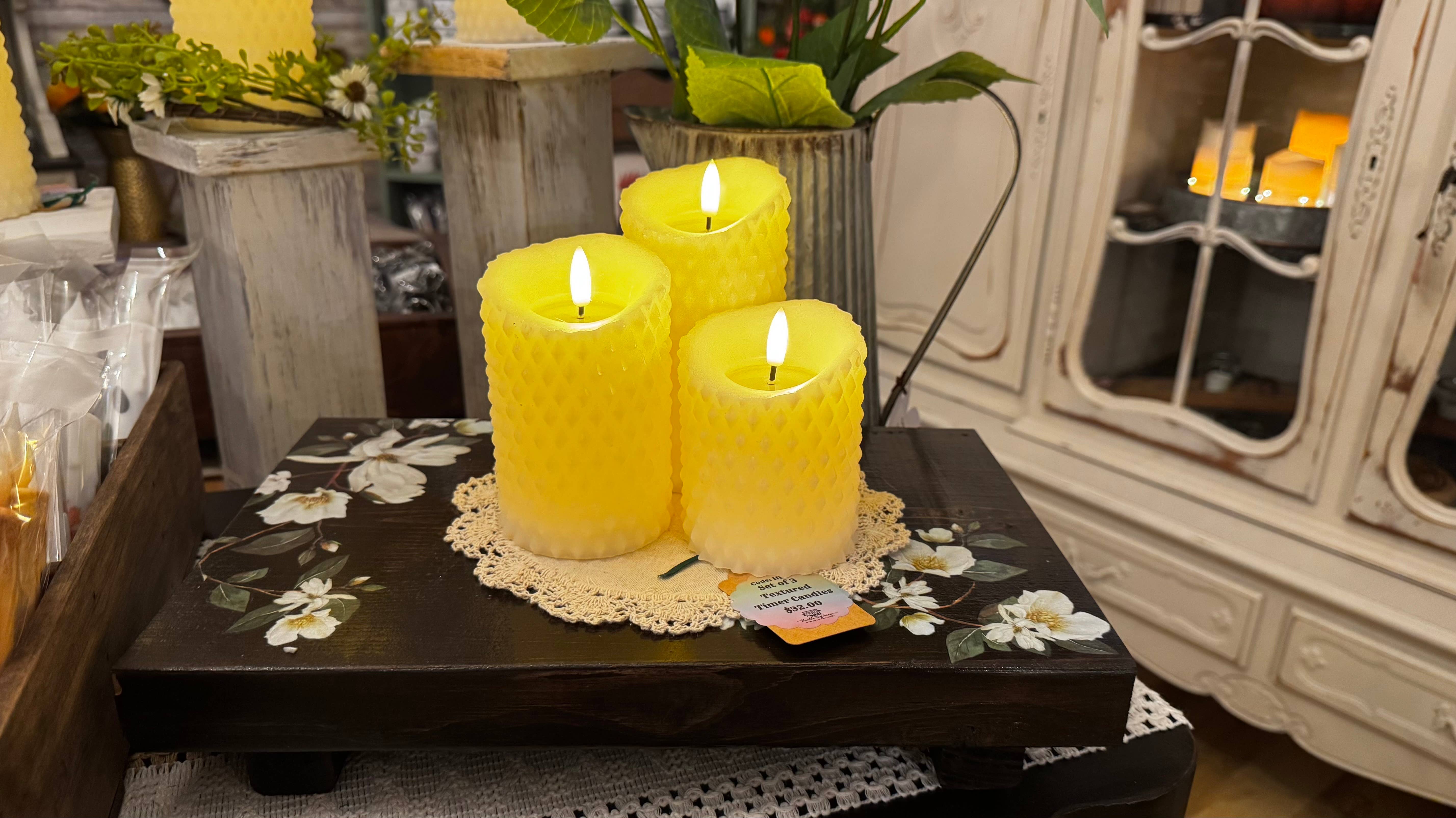 J'adore ces bougies texturées. Ce sont mes préférées et elles se vendent très bien. La qualité est vraiment bonne et elles sont si jolies, qu'elles soient ensemble dans un ensemble de trois ou utilisées séparément dans un vase avec une couronne de bougie autour. Mes clients adorent aussi ces bougies et ils me demandaient quand j'en recevrais d'autres.