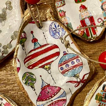 Plongez-vous dans les fêtes de fin d'année avec les décorations à huîtres de Ten Twenty Six Designs. Ces ornements, méticuleusement fabriqués sur l'île de Hilton Head, en Caroline du Sud, incarnent la nature et l'élégance. Utilisant des matériaux naturels tels que des coquilles d'huîtres, les ornements apportent un charme unique à votre décoration d'intérieur. Le magnifique motif de découpage bleu et blanc ajoute une touche de sophistication. Chaque décoration est livrée dans une boîte cadeau blanche, prête à être offerte ou à ajouter une touche décorative à votre espace.