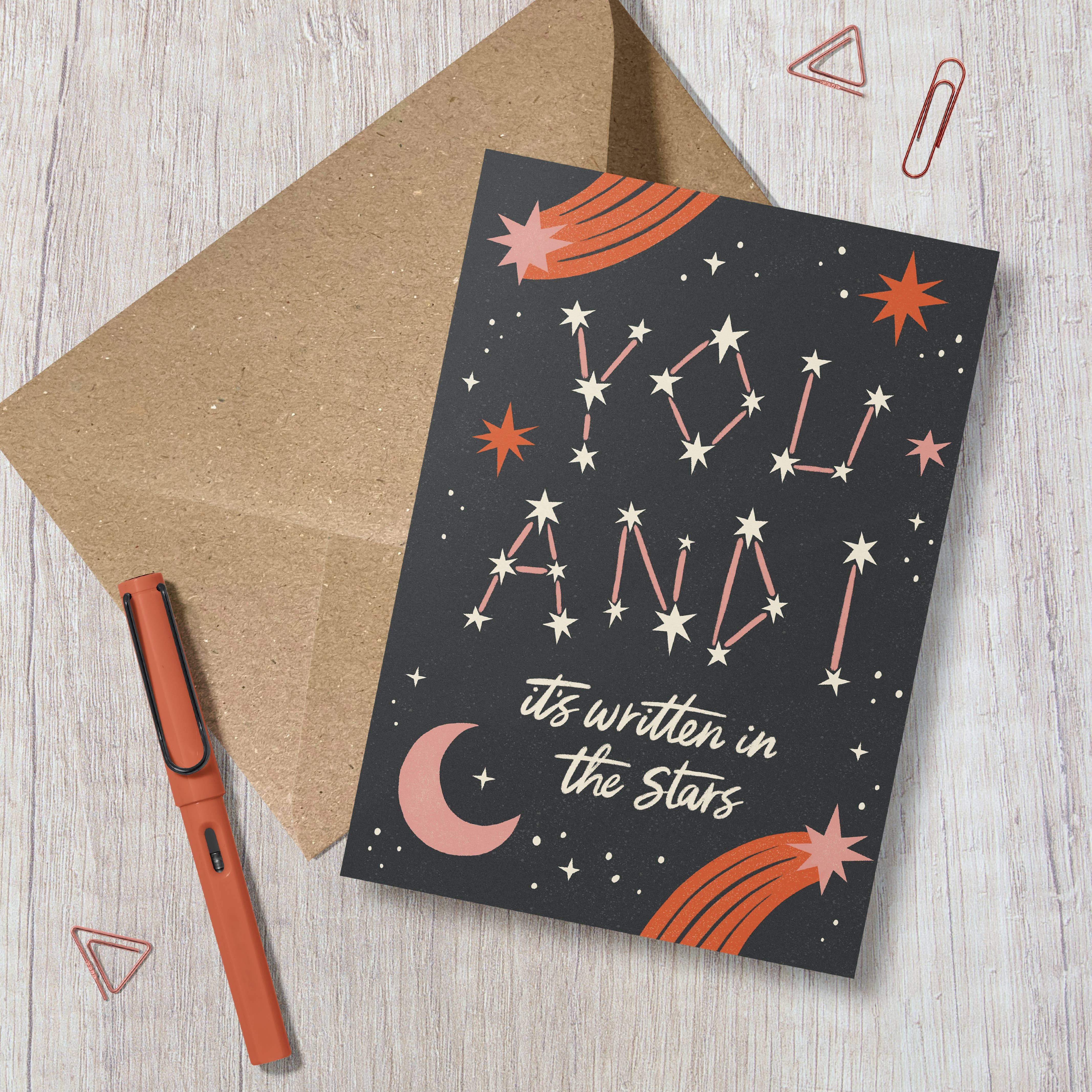 Carte de vœux illustrée amusante, moderne et rétro avec une typographie ludique dessinée à la main. Thème : espace, étoiles, zodiaque, extérieur, céleste Pour : un proche, un conjoint, un ami Occasion : anniversaire, anniversaire Illustré par Emily Byrd. Taille = A6 (105 X 148 mm) Intérieur vide. • Papier 100 % recyclé FSC® (300 g/m² texturé) • Conçu et imprimé au Royaume-Uni • Biodégradable • Entièrement recyclable • Emballage sans plastique Fourni « NAKED » avec une enveloppe en kraft nichée à l'intérieur. Possibilité d'ajouter du violoncelle biodégradable. Expédié dans un emballage protecteur sans plastique et recyclable.