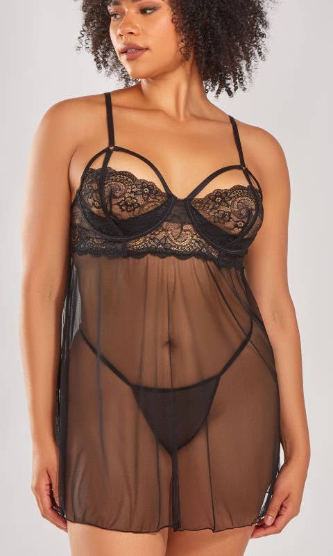 Au carrefour des fleurs, du désir et de la lingerie se trouve le monde enchanteur de Flora. Le Lace Babydoll & G-String Set mélange douceur et allure sensuelle, avec une dentelle audacieuse et semi-transparente qui enflamme la passion et l'expression de soi. Détails du produit : - Design à armatures et demi-bonnets en satin soutenant des bonnets en dentelle transparente. - Ajustement flexible avec dentelle florale extensible et jupe fluide. - Bretelles entièrement réglables. - Bande en satin avec fermeture arrière réglable à crochets et œillets. - String en dentelle inclus. Entretien et composition : - 88 % NYLON, 12 % SPANDEX. EXCLUSIF DES GARNITURES ET ÉLASTIQUES. - LAVAGE À LA MAIN À L'EAU FROIDE. JAVELISANT SANS CHLORE. SÉCHAGE SUR CINTRE. NE PAS REPASSER.
