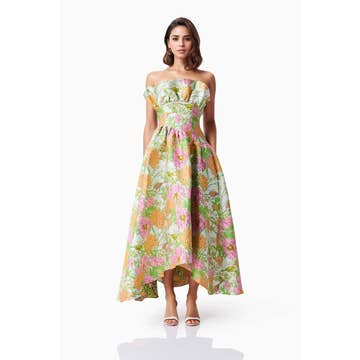 Robe longue maxi jaune citron à grosses fleurs - LWD3057 en vente B2B