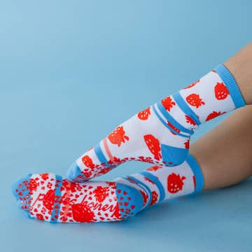 Chaussettes en bambou et fraise pour femmes Novelty Fruit Socks, rouges en vente B2B
