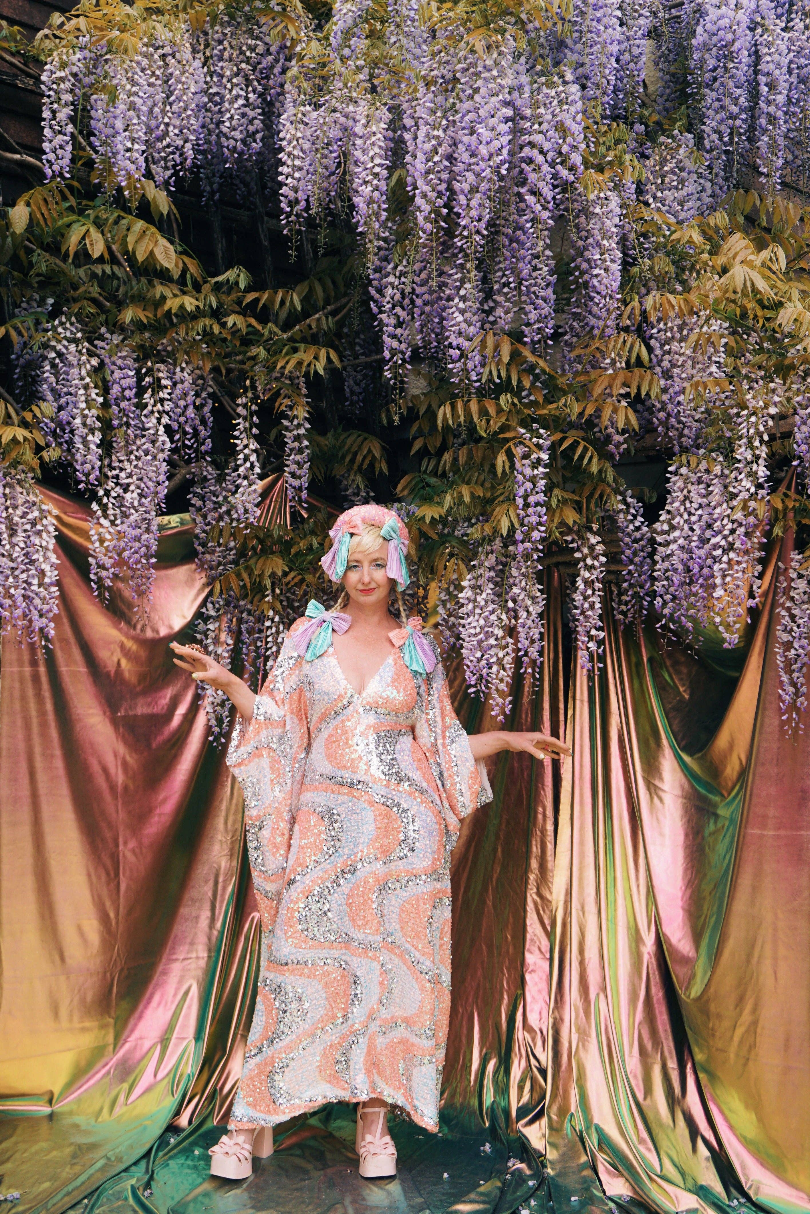 Wow, c'est magnifique ! J'adore voir un produit d'une entreprise possédée et créée par une femme. Les caftans à sequins sont partout, mais ceux-ci sont bien plus spéciaux que tous les autres que nous avons trouvés. J'aime aussi les rubans de forme qui ajoutent une autre couche de style. Excellent argument de vente !