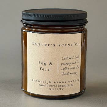 Fougère et Brume Voyage à travers une forêt brumeuse. Ce parfum rafraîchissant reproduit l'atmosphère méditative des bois couverts de nuages purifiés par la pluie. Ce parfum s'ouvre sur une bouffée fraîche de bergamote éclatante, menant à un cœur aromatique apaisant de lavande et de menthe. À la base reposent de la mousse verte, une terre riche en minéraux et une touche de genévrier. Bougie en cire de soja 100% naturelle. Également disponible en spray. Mèche en coton, sans phtalates. Pot de 16 oz - 80 heures de combustion, pot de 8 oz - 50 heures de combustion, boîte de 4 oz - 25 heures de combustion.