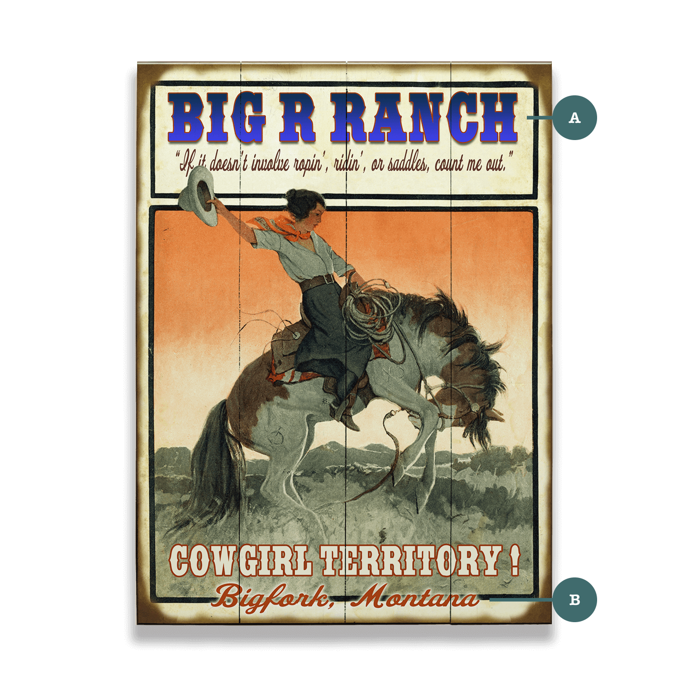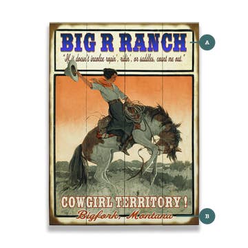 Portraits de Cowgirl - La Cowgirl du Far West Lorsqu'on recherche des impressions artistiques qui capturent l'esprit de la cowgirl, une gamme diversifiée de styles émerge, répondant à des goûts variés. Des représentations inspirées par le vintage de scènes classiques de l'Ouest aux interprétations modernes et abstraites, les options sont nombreuses. Vous trouverez de l'art qui célèbre la force et l'indépendance de la cowgirl, souvent avec des images d'équitation, de paysages sauvages et de tenues emblématiques de l'Ouest comme des bottes et des chapeaux. Les styles populaires incluent : Impressions Western Vintage : Celles-ci évoquent un sentiment de nostalgie, présentant souvent des images classiques de cowgirl en tons sépia ou avec une esthétique vieillie. Art Moderne de Cowgirl : Ce style adopte des techniques artistiques contemporaines, incorporant des couleurs vives, des formes abstraites et des designs minimalistes. Impressions Rustiques et de Ferme : Ces impressions soulignent la connexion entre la cowgirl et le monde naturel, avec des scènes de vie rurale et de paysages pastoraux.