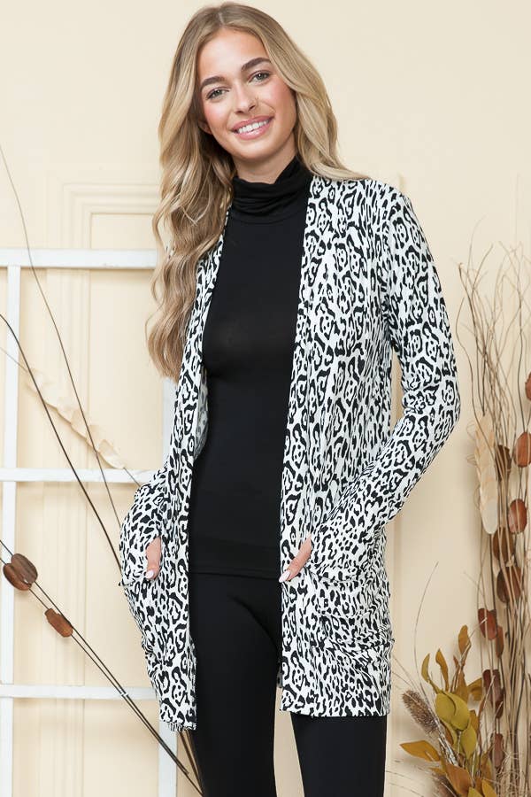 CARDIGAN OUVERT MAXI RAYURES ET CARREAUX 95 % RAYONNE 5 % SPANDEX FABRIQUÉ AUX ÉTATS-UNIS