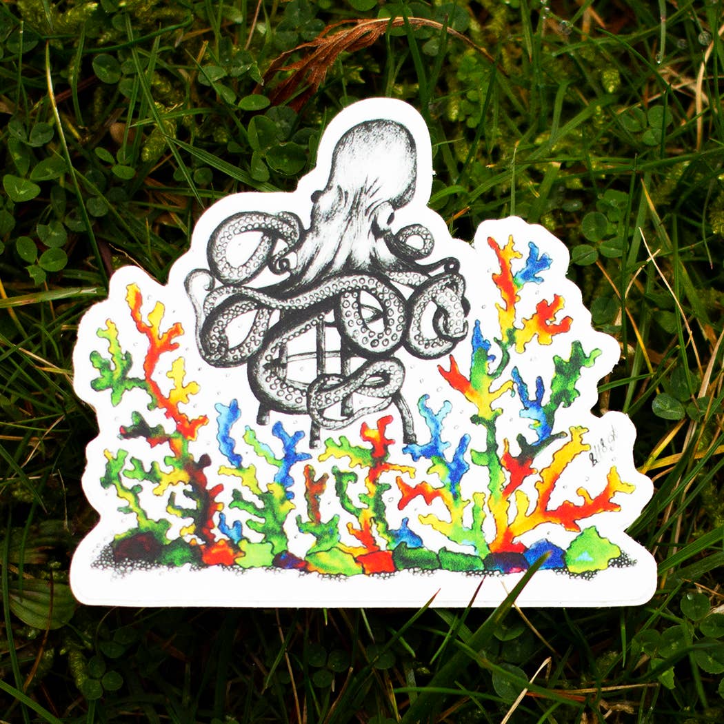 Autocollant en vinyle en forme de poulpe au crochet arc-en-ciel en vente B2B