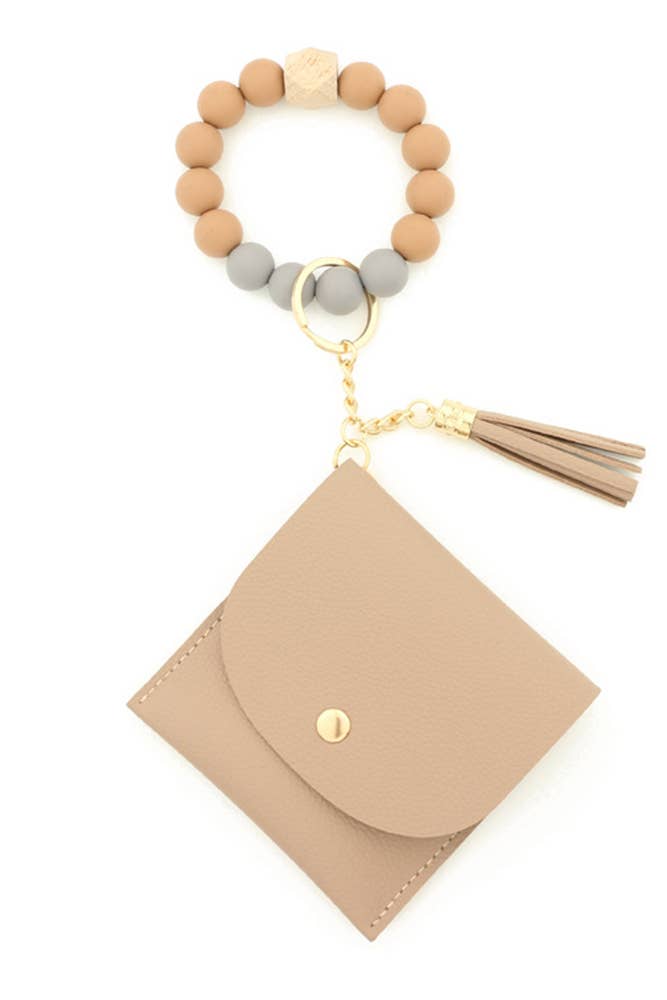 Bracelet en perles de silicone avec porte-cartes et porte-clés