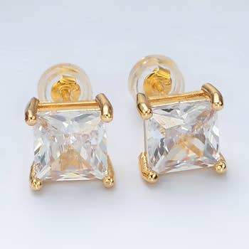 Boucles d'oreilles à tige carrées en acier inoxydable doré et zircone cubique de 7 mm pour homme en vente B2B