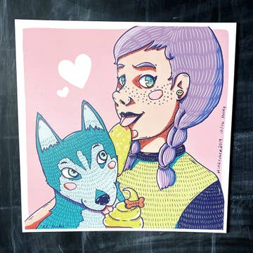 8,5x11/Risographie/Hommage à un chiot courageux qui méritait mieux. Imprimé et illustré par Alex Luciano à Richmond, VA Laika (/ᵉ lakə/ ly-kə/ ; russe : ла́ка, IPA : [ᵉ lajkə] ; vers 1954 — 3 novembre 1957) était une chienne spatiale soviétique qui a été l'un des premiers animaux dans l'espace et le premier à orbiter autour de la Terre. L'impression risographique est un procédé unique et écologique qui associe les qualités de la sérigraphie traditionnelle à l'efficacité des méthodes numériques. Reconnue pour ses couleurs éclatantes et ses textures distinctes, cette technique utilise des encres à base de soja et un système de tambour semblable à un pochoir pour superposer chaque couleur individuellement. Le résultat est un imprimé unique et légèrement varié avec une sensation tactile riche. Les imprimés risographiques sont appréciés pour leur aspect organique, leurs légères imperfections et leur empreinte artistique audacieuse. Toutes les impressions sont emballées dans une pochette transparente avec un support en carton à puce épais.