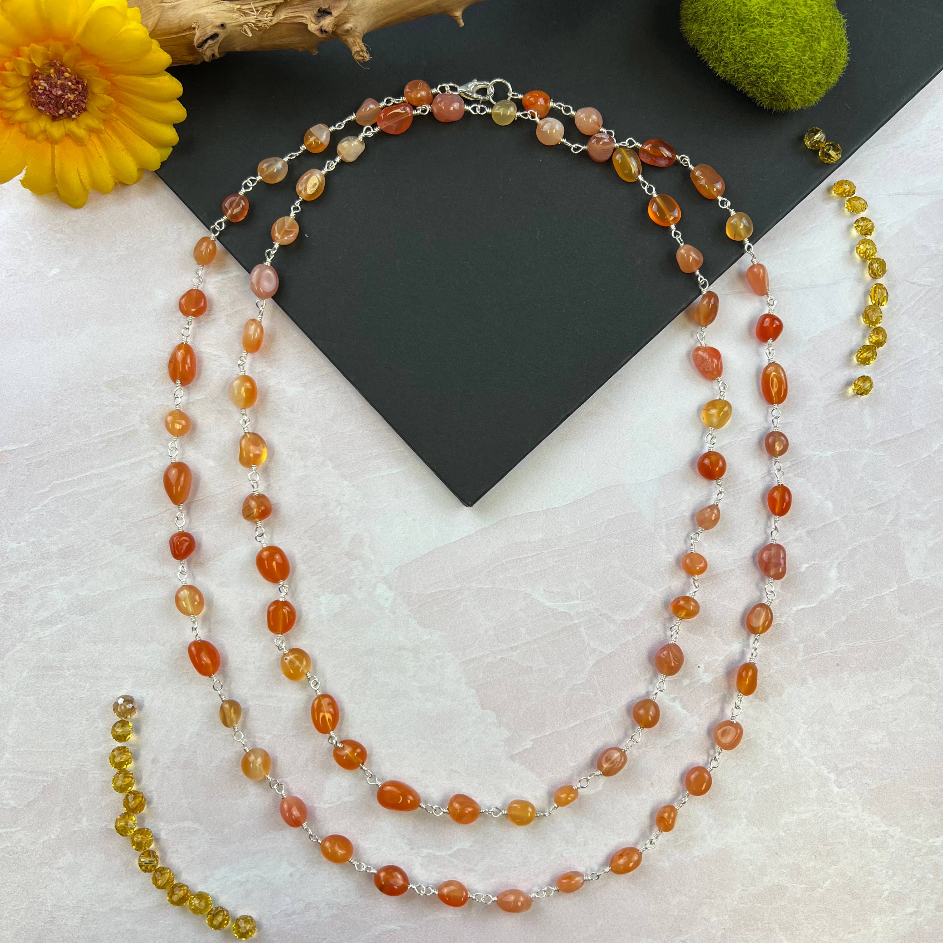 Collier en cornaline avec perles ombrées orange