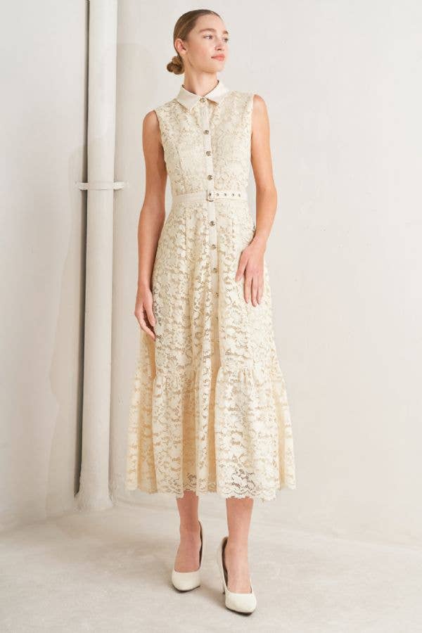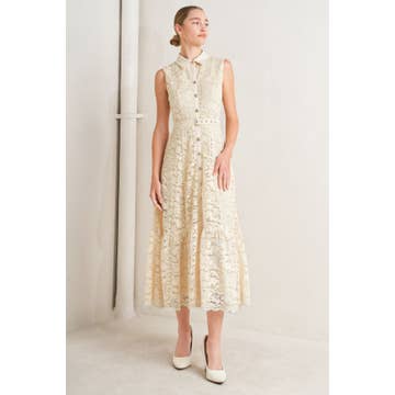 Robe mi-longue en dentelle sans manches fantaisiste avec combinaison amovible - 4609 BG/GRN ROSE en vente B2B