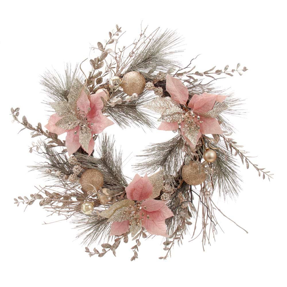 Couronne rose à suspendre en PVC floconné, 66 cm en vente B2B