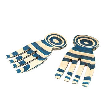 Un gratte-dos en grès, fait rire un peu. Un manche incurvé orné d'une main sculptée et d'un « vernis à ongles » rouge vif. Cet article peut également être utilisé comme une pince à salade lorsqu'il est utilisé par paire. environ 12 pouces de long, disponible en grès clair ou foncé * De légères variations peuvent survenir dans le produit en raison de sa nature artisanale