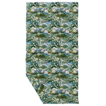 Beau torchon à thé/torchon imprimé à la main avec motif albertain 100 % coton biologique Dimensions 27 x 16 pouces Étiquette volante au dos Laver et sécher en machine