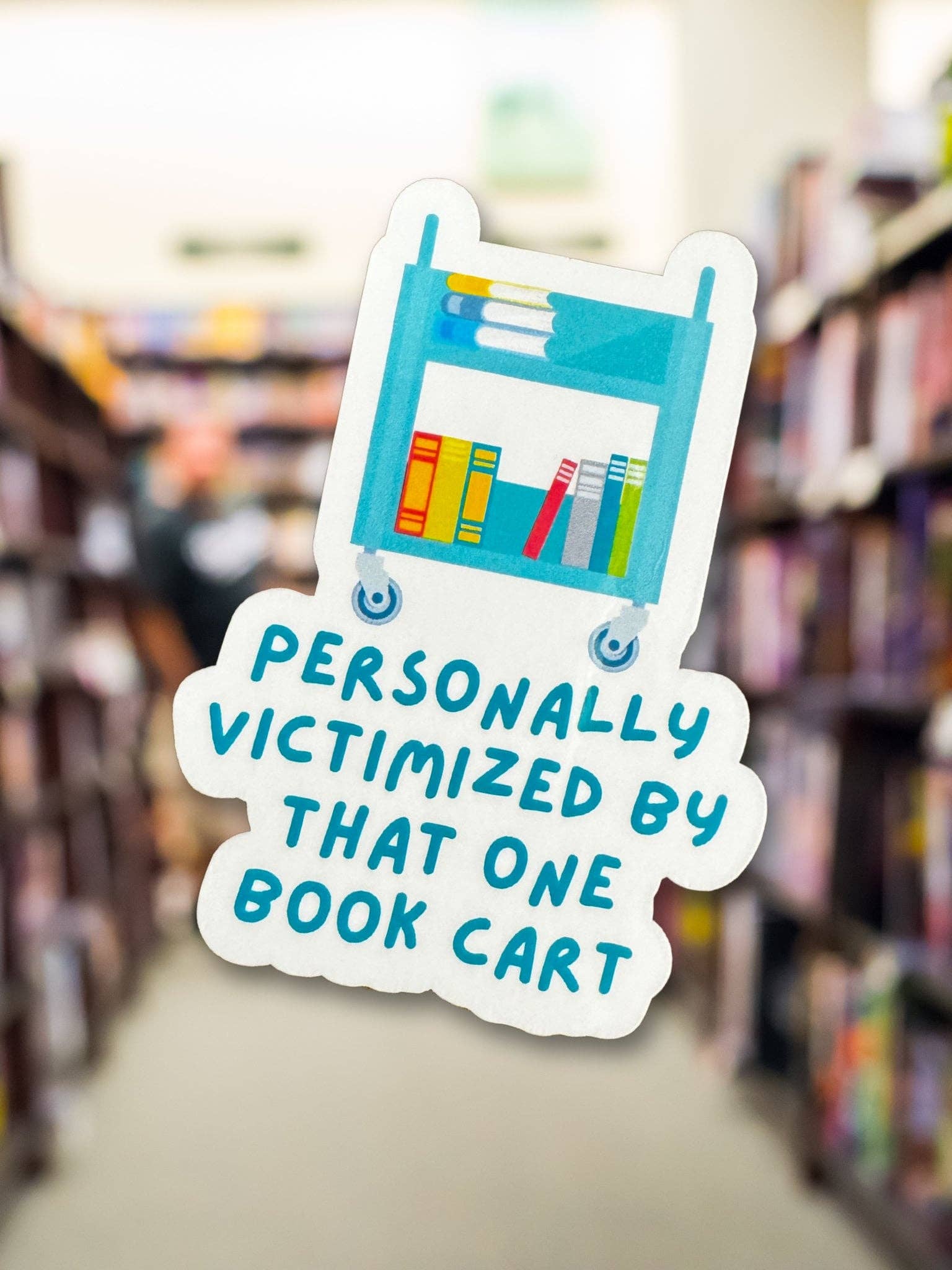 Personnellement victimisé par cet autocollant vinyle de chariot de livres en vente B2B