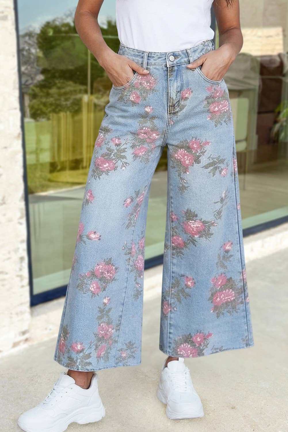 Conçu en patchwork floral, pantalon de coupe décontractée en denim avec détails brodés. Spécifications/Dimensions : - TOUR DE TAILLE : 14 POUCES - HAUTEUR (BRACELET INCLUS) : (F) 12-1/4"/(B) 14-3/4" - ENTREJAMBE : 30 1/2 POUCES