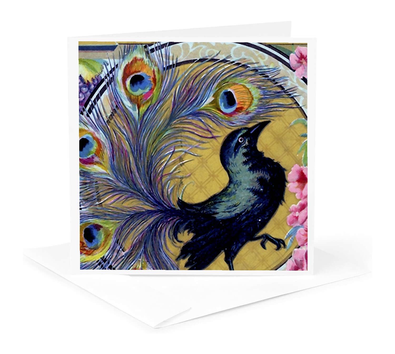 Carte de vœux Corbeau vintage avec fleurs violettes en vente B2B