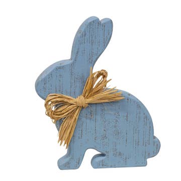 Lapin bleu vieilli assis en bois avec nœud en raphia en vente B2B