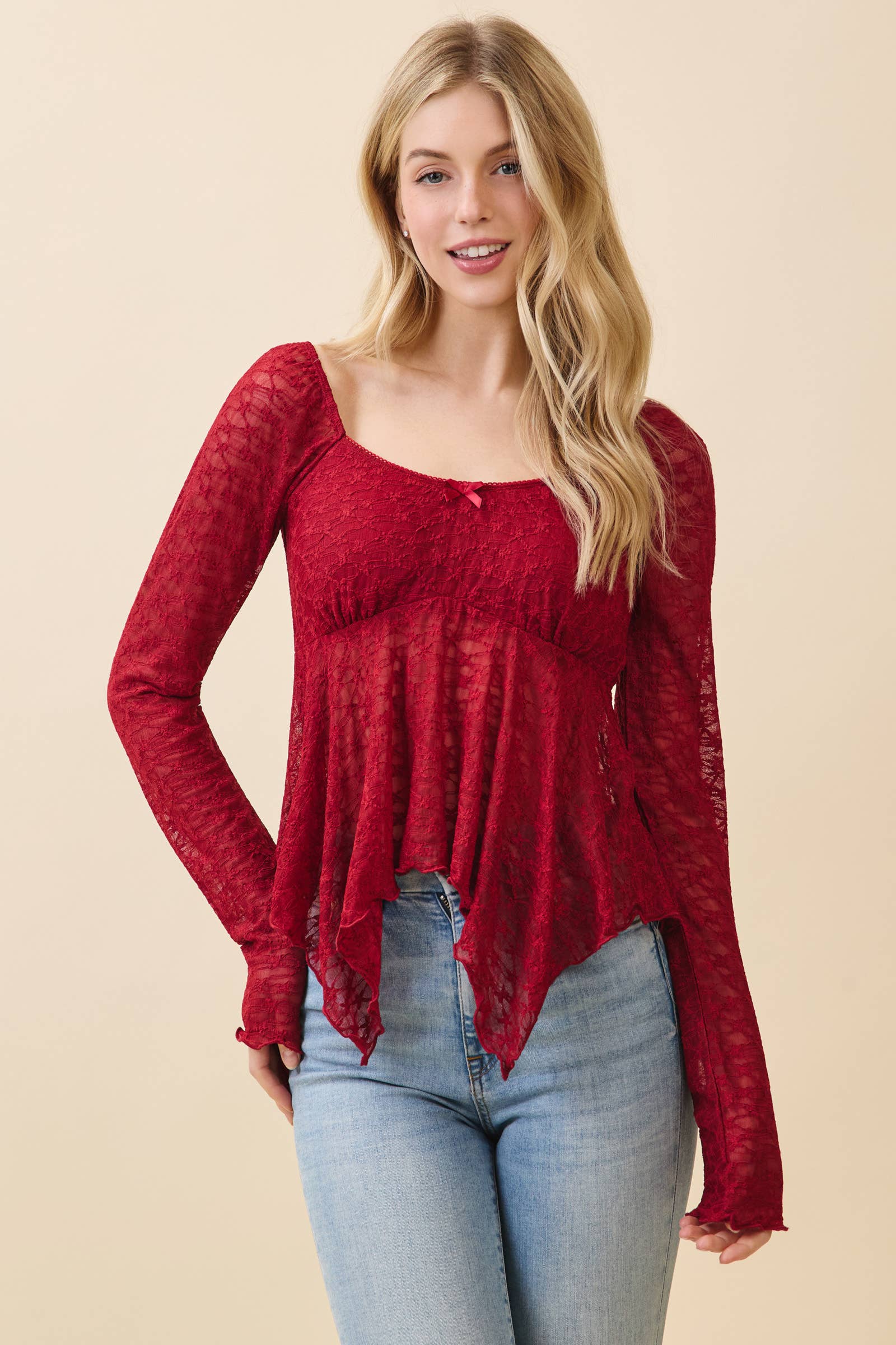 BLOUSE ROUGE EN DENTELLE À MANCHES 3/4 AVT10540K