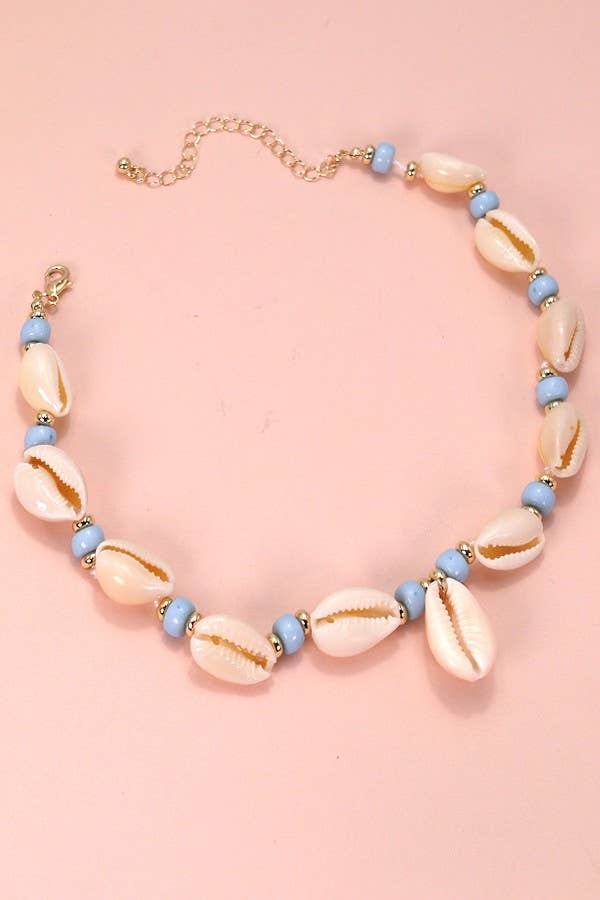 Collier de 14 pouces en lin Cowry - 12 pièces Fabriqué en Indonésie.