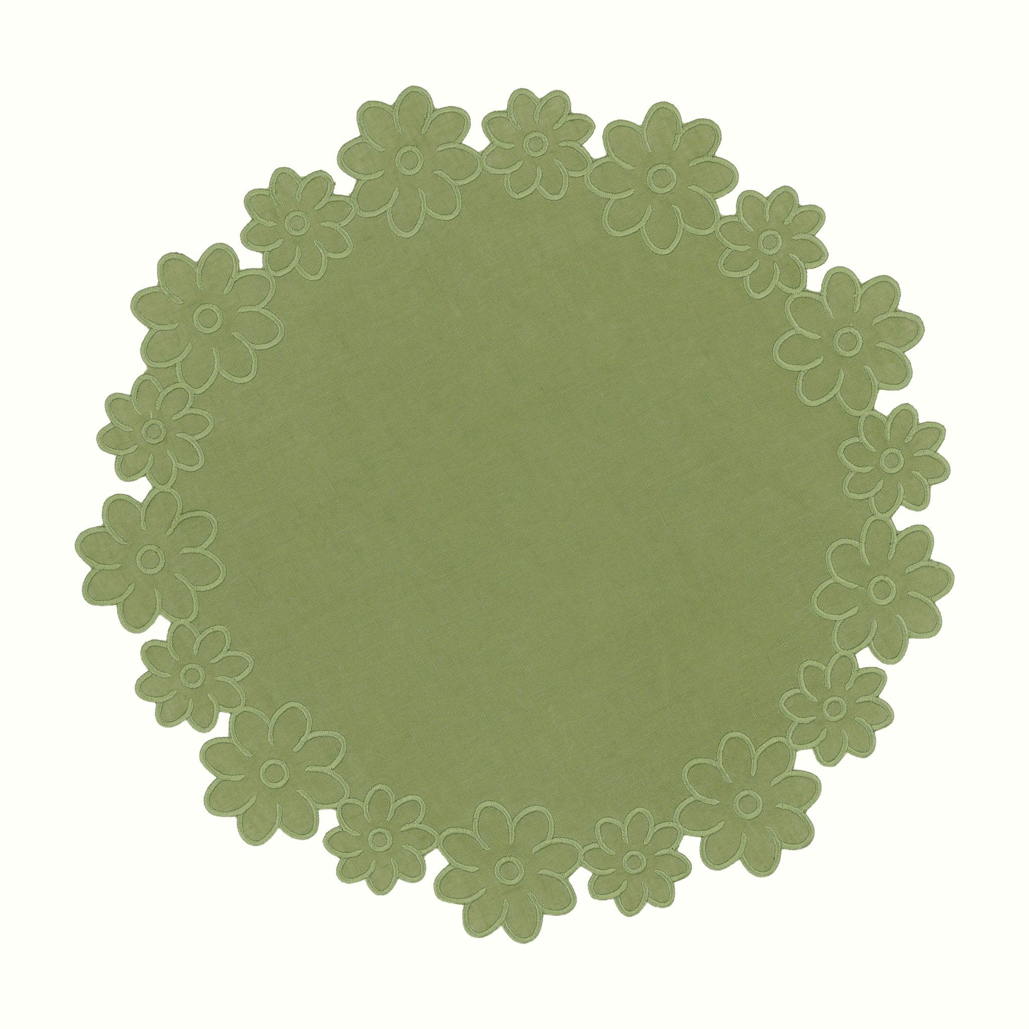 Set de 4 sets de table ronds en jute verte Daisy 38 cm en vente B2B