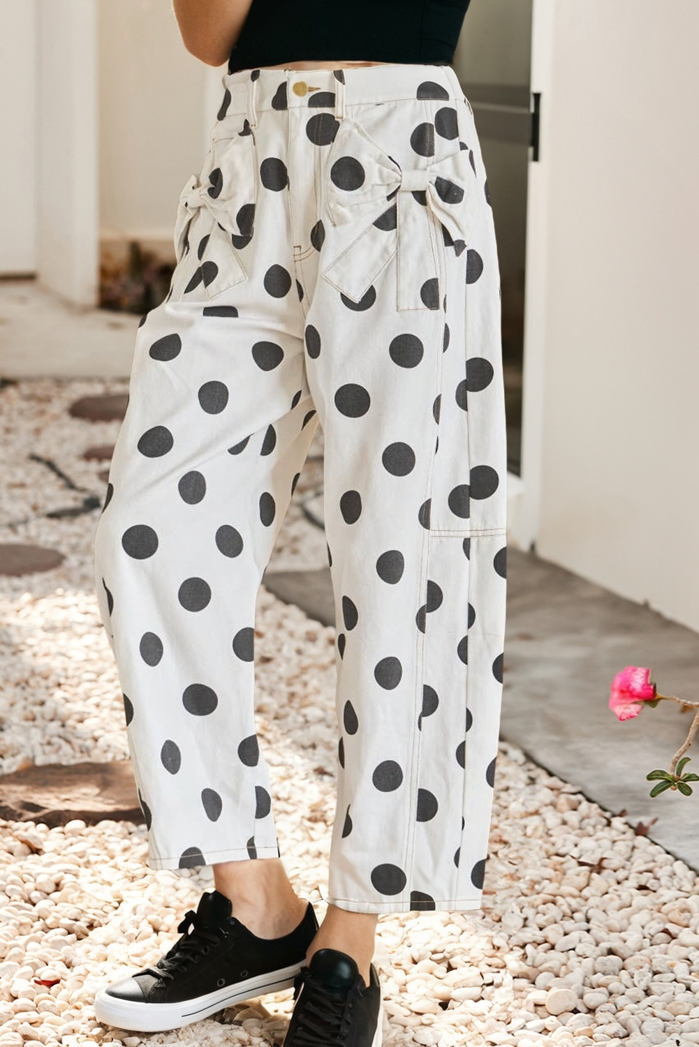 PANTALON LONG À DÉTAILS PLISSÉS, CEINTURE ÉLASTIQUE AU DOS HAUT ASSORTI DT30029T 100 % POLYESTER Le mannequin porte la taille S Hauteur : 5 pi 8 po Buste : 32B Taille : 23 pouces Hanches : 34 pouces