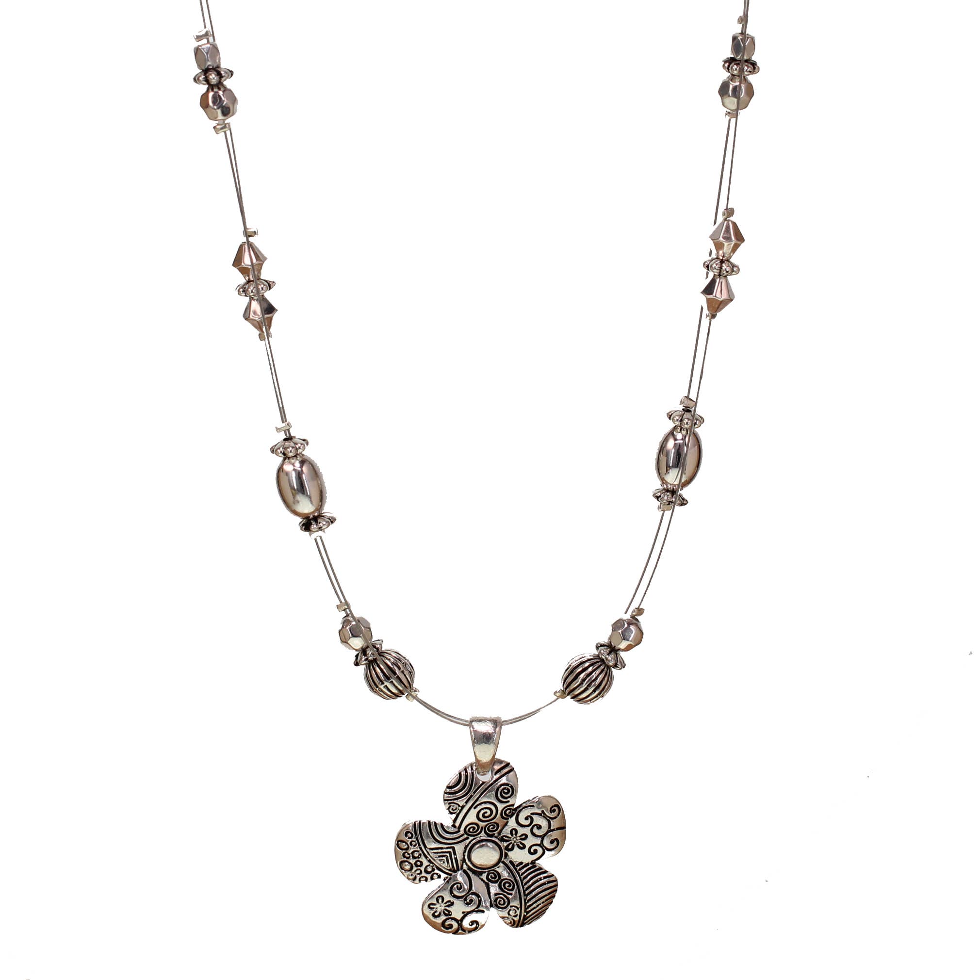 Collier Fleur métal mélangé - 4813