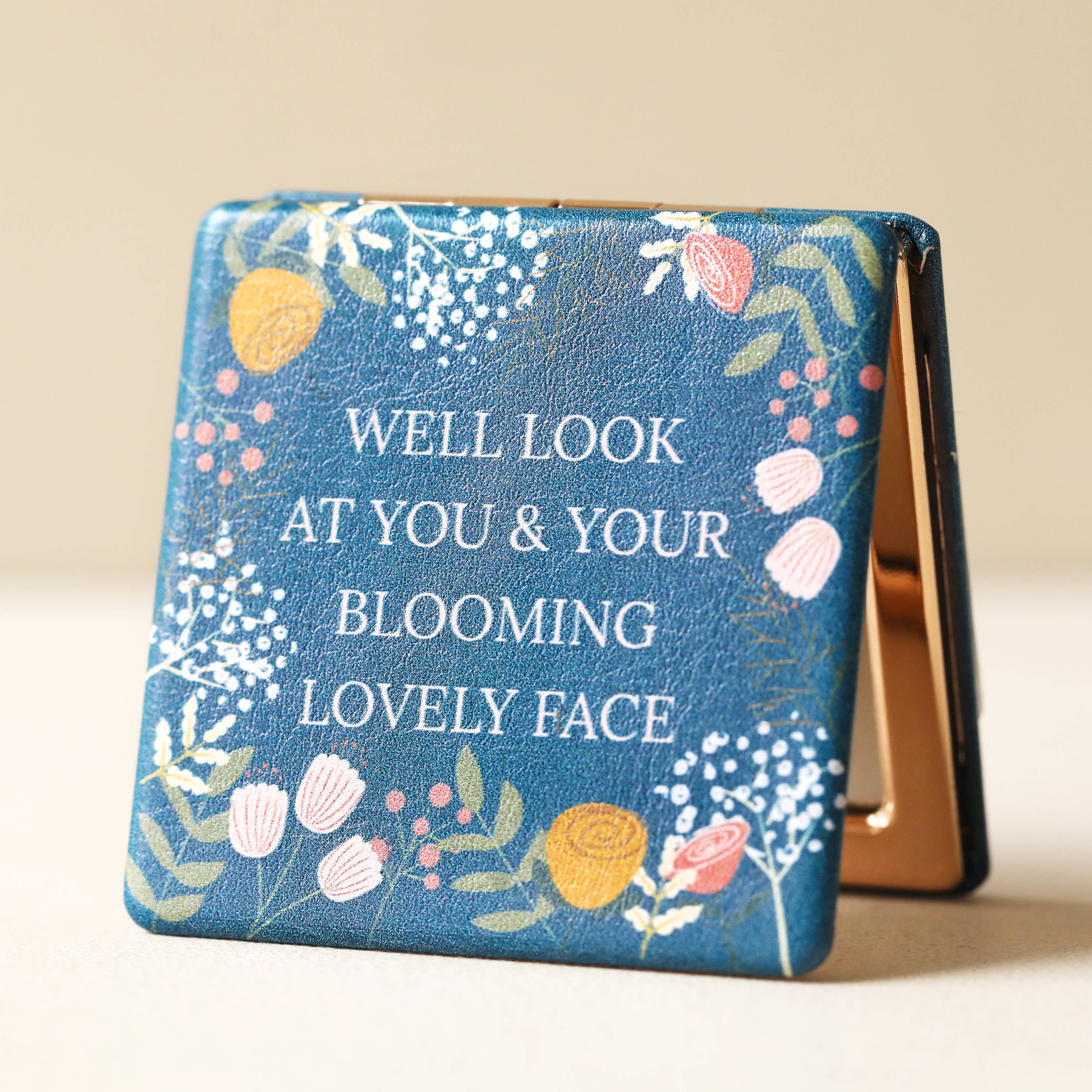 Miroir compact « Live by the Sun » avec motif doré