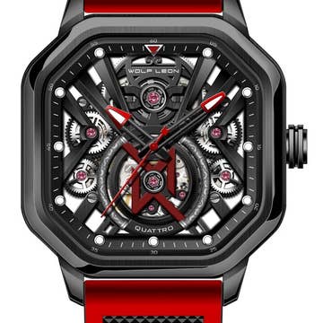 Boîtier en acier inoxydable 316L de qualité chirurgicale Mouvement automatique orné de bijoux Roulements à bijoux : 20 bijoux Réserve de marche de 36 heures Battements par heure (BPH) : 21600/heure Cristal minéral recouvert de saphir Cadran Skeleton Dossier d'observation pour visualiser le mouvement Bracelet en cuir véritable Fermoir en acier inoxydable avec logo gravé Mains lumineuses Marqueurs lumineux 43 mm de diamètre Résistance à l'eau 10 ATM