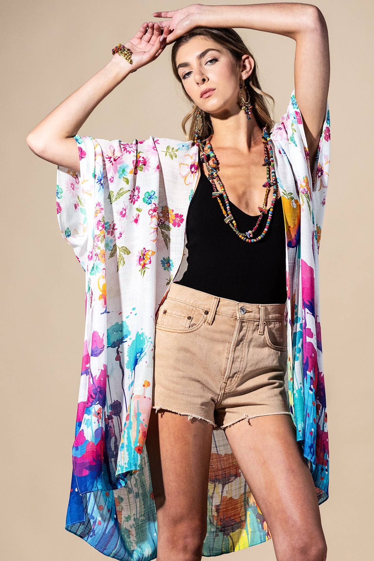 Kimono de plage Hibiscus, couverture de plage, aquarelle tropicale des Caraïbes en vente B2B