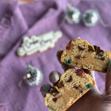 Notre base de biscuits mélangée à des bonbons M&M ! Parfait pour les enfants ! Durée de conservation : 2 à 3 semaines à température ambiante Jusqu'à 12 mois au congélateur. Les cookies doivent être vendus à tout moment dans notre emballage de marque. Le fait de retirer le produit de son emballage diminue sa fraîcheur et sa qualité.